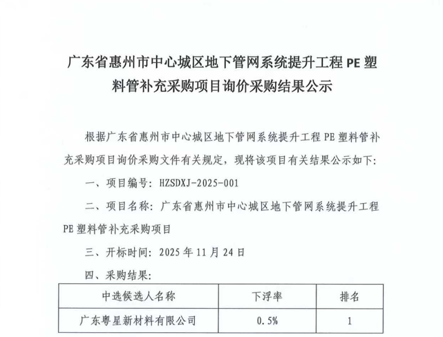 廣東省惠州市中心城區地下管網系統提升工程—雨水管網建設項目、惠州市增江龍門段治理工程施工(二標段)塑料管及管件采購項目詢價公告……